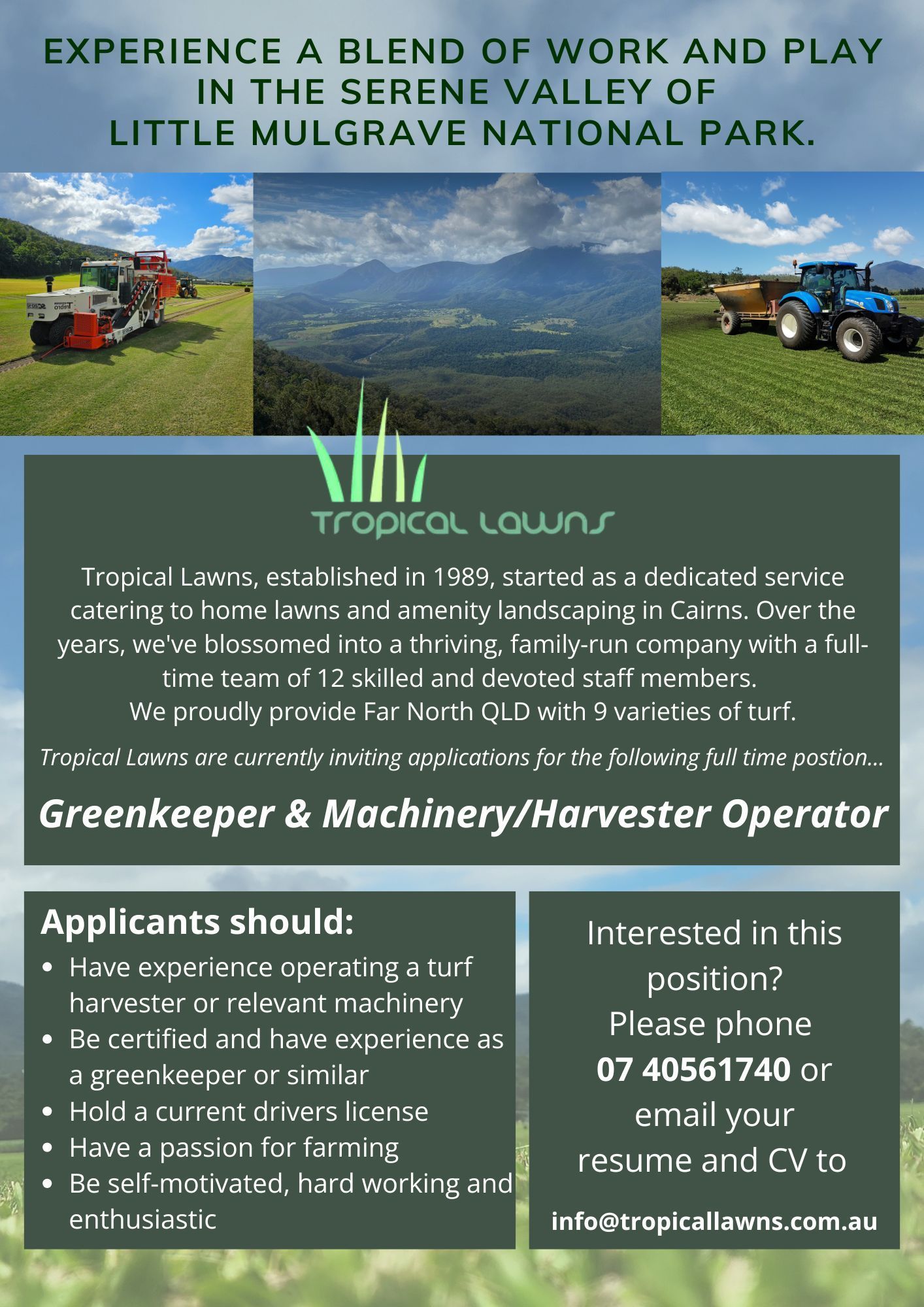 Ready to transform your outdoor space with our exceptional turf solutions? Reach out to Tropical Lawns today! Our friendly, knowledgeable team is eager to assist you with all your turf and lawn care needs. You can call, e-mail, or visit us at our office just 30 minutes southwest of Cairns. Together, let's cultivate a greener tomorrow.